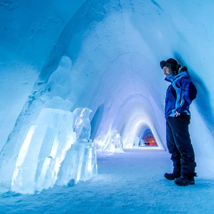 Besuchen Sie das Schneehotel und verweilen Sie bei einem Drink in Norwegens größter Eisbar.