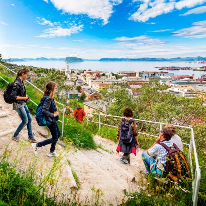 Auf dieser Wanderung auf den Berg Salen erleben Sie die Geschichte von Hammerfest, und werden auf dem Gipfel mit einem wunderbaren Ausblick auf den Atlantischen Ozean und den umgebenen Inseln.