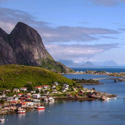An der Küste von Trondenes stellen die nördlichste mittelalterliche Kirche der Welt und das Geschichtszentrum große Reichtümer dar – sie enthüllen durch den Anblick, Geräusche und Geruch die Geheimnisse der letzten tausend Jahre. Im Schutze der Gipfel der Vesterålen produziert diese Landschaft Erdbeeren, die unter der Mitternachtssonne gereift sind. Die Bauernhöfe und Dörfer sehen in den lebendigen Farben des Sommers oder im letzten Schnee des Winters idyllisch aus. Auf der Fähre über den Fjord wird Kaffee und Kuchen serviert, bevor Sie der Bus weiter nach Sortland bringt. Ihr Schiff nähert sich unter der prächtigen Brücke, während Sie hoch über dem Meeresspiegel fahren.
