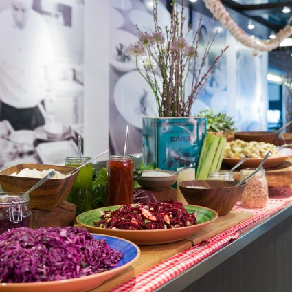 Das Buffet ist von einem hohen Standard und beinhaltet eine große Auswahl an kalten Vorspeisen, Salaten, Hauptgerichten mit Fleisch und Fisch und Desserts und ein Getränk (1 Bier, 1 alkoholfreies Getränk oder 1 Glass Wein). Vom 12. November bis 23. Dezember wird ein spezielles Weihnachtsbuffet serviert, welches Spezialitäten der Weihnachtszeit beinhaltet.