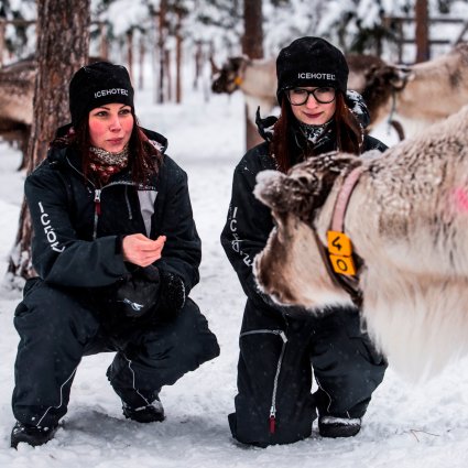 Ihr Guide holt Sie am Eishotel ab und zusammen fahren Sie zu einem Rentierhof der Samen. Hier lernen Sie mehr über die Nationaltrachten der Samen und die Wichtigkeit der ganzjährigen Rentierzucht. Nutzen Sie dabei die Möglichkeit einen Rentierschlitten zu fahren und die neugierigen Tiere mit der Hand zu füttern.