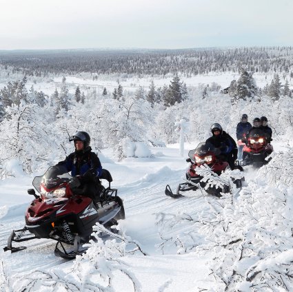 Sie werden bei Kakslauttanen abgeholt und mit warmer Bekleidung ausgerüstet. Der Reiseleiter wird Ihnen Anweisungen geben, wie das Schneemobil zu fahren ist. Sie fahren das Schneemobil als Paar, eine Person fährt und die andere sitzt hinten als Passagier. Sie können auf halber Strecke tauschen.S ie werden mit einem kleinen Adrenalinschock in die Wildnis starten und somit in die unvergessliche Natur eintauchen. Die Fahrt endet auf einer Rentier-Farm, auf der Sie die wichtigsten Tiere der Arktis treffen – Rentiere. Außerdem können Sie diese liebevollen und friedlichen Lebewesen füttern, wenn Sie wollen. Im Anschluss gibt es eine warme Suppe zum Mittagsessen.