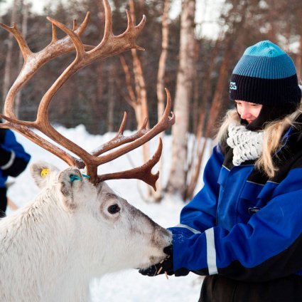 Auf diesem beliebten Ausflug treffen Sie einen heimischen Rentier-Hirten mit seinen vielen Rentieren. Auf der Rentierfarm können Sie den interessanten Geschichten über das Leben der Rentier-Hirten und der samischen Kultur lauschen. Sie können ebenfalls die Möglichkeit ergreifen an einer kurzen Fahrt auf einem Rentierschlitten teilzunehmen. Transfer mit dem Auto/Minibus.