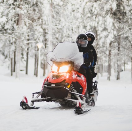 Die Durchschnittsgeschwindigkeit während der Schneemobiltour ist aus Sicherheits- und Verkehrsgründen begrenzt. Zwei Erwachsene fahren in einem Schneemobil, es gibt die Möglichkeit ein Schneemobil allein zu fahren (gegen Aupfreis). Wenn Sie Ihr eigenes Schneemobil fahren möchten informieren Sie uns bitte während der Buchung.