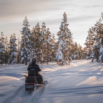 Reiseleiter, warme Kleidung (warmer zweiteiliger Schneemobil-Overall in hoher Qualität, Stiefel, Socken, Fäustlinge, Sturmhaube und Schal), Helm, Fahranweisungen, Transfer zu zentralen Hotels in Rovaniemi, zur Arctic Circle Wilderness Lodge, dem Apukka Resort oder der Arctic TreeHouse Hotel.
