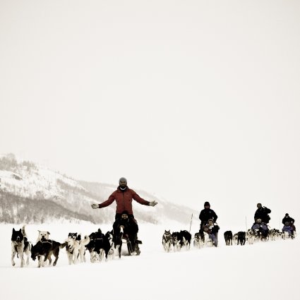 Schneebedeckte Natur, zugefrorene Seen, Temperaturen unter dem Gefrierpunkt und 140 eifrige Huskys sind bereit, Ihnen eine wundervolle Schlittenfahrt zu bereiten!