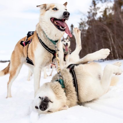 Auf dieser kurzen Safari in Muonio haben Sie das Gefühl, ein Musher auf einem Husky-Schlitten zu sein. Die Tour beginnt am Harriniva-Huskyhof, der mit über 400 Huskies eines der größten arktischen Schlittenhundezentren der Welt ist.