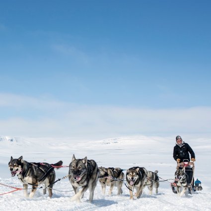 Verbringen Sie den Tag mit den Huskies auf dieser 25km langen Tour durch die atemberaubende lappische Landschaft. Fahren Sie Ihren eigenen Hundeschlitten!