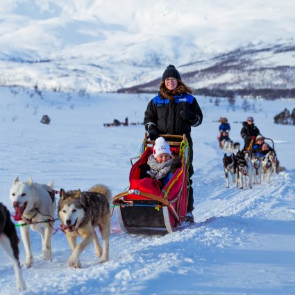 Sie werden Ihr eigenes Team von Alaska-Huskys vorbereiten und ungefähr 5-6 Stunden mit Ihnen fahren und dabei die Natur Nordnorwegens genießen. Es wird keinerlei Vorerfahrung mit Hundeschlittenfahren benötigt. Sie werden während der Tour von den erfahrenen Hundeschlittenführern lernen.