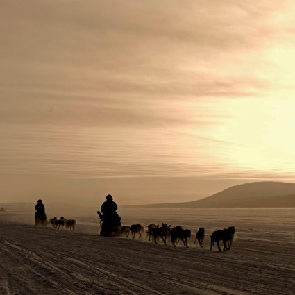 Enden Sie Ihren Aufenthalt im Eishotel auf eine aufregende Weise; reisen Sie mit dem Hundeschlitten vom Eishotel in Jukkasjärvi zum Flughafen Kiruna.