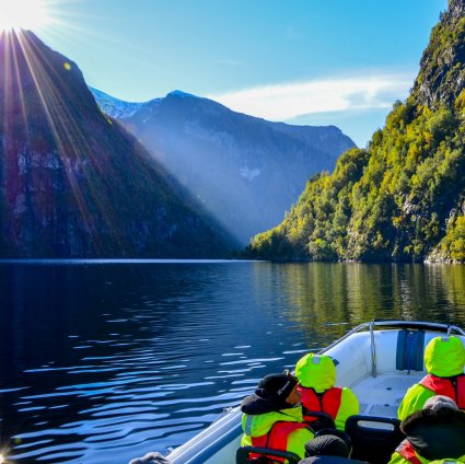 Während dieser circa 2 Stunden und 15 Minuten langen Fjordsafari erkunden Sie die Gegend Aurlandsfjord & Nærøyfjord, die zum UNESCO-Weltkulturerbe ernannt wurde, mit dem Speedboot. Der Aurlandsfjord und der Nærøyfjord sind zwei von vielen Fjordarmen des 204km langen Sognefjords, der ‚König der Fjorde‘. Im Jahr 2005 wurde der Nærøyfjord in die Liste des UNESCO-Weltkulturerbes aufgenommen und der Aurlandsfjord ist Teil des Weltkulturerbes rund um den Nærøyfjord.