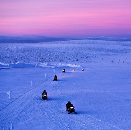 Sie werden in Kakslauttanen abgeholt, mit Thermo-Kleidung ausgestattet und bekommen Anweisungen wie Sie das Schneemobil lenken. Die Lichter des Schneemobils werden den Schnee zum Leuchten bringen, wenn Sie durch die arktische Wildnis fahren. Es wird eine Pause geben, in der Sie eine Heißgetränk trinken können und, wenn Sie Glück haben, werden Sie Nordlichter sehen, die den Himmel erleuchten. Während der Tour wird es mehrere Stopps geben, um Fotos zu machen und den Fahrer zu wechseln. Nach der Fahrt gibt es noch Heißgetränke und Gebäck.