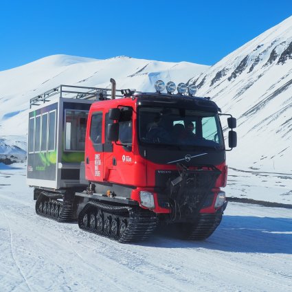 Wenn die Pistenraupe ankommt, besteht kein Zweifel, ob dies Ihre Exkursion ist! Der Exkursionsleiter wird Sie an Bord willkommen heißen und nach einer kurzen Einführung werden Sie die Stadt verlassen und Ihren ersten Halt an einem Eisbären-Warnschild einlegen. Kurz danach brechen Sie fernab des Pfades auf Ihr Abenteuer auf. Das Ziel des Ausflugs ist der atemberaubende Aussichtspunkt Linken auf dem Berg Hiorthfjellet auf der anderen Seite des Adventdalen-Tals. Sobald Sie am Aussichtspunkt angekommen sind, werden Sie eine Pause einlegen und die fantastische Aussicht nach Longyearbyen genießen, während der Exkursionsleiter warme Getränke serviert. Bis zum 18. April wird der Ausflug bei Sonnenuntergang stattfinden; beobachten Sie die Sonne wie sie sich den Bergen nähert, auf der anderen Seite des Isfjords, und die Art wie der Himmel seine Farbe von blau zu rot, dann lila und orange wechselt, ist einfach nur magisch.