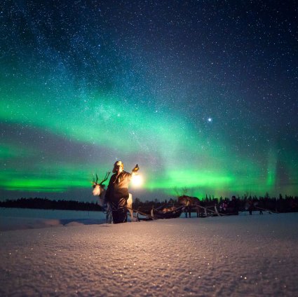 Die Safari findet auf einer lokalen Rentierfarm nahe Rovaniemi statt, weit entfernt von den störenden Lichtern der Stadt. Auf der Farm werden Sie echte Rentierhirten treffen, die Ihre Erfahrung über das Leben im Herzen der Natur mit Ihnen teilen werden. Die Rentierschlittenfahrt dauert ca. 30-45 Minuten (ca. 3 km) und im Anschluss werden Sie zurück nach drinnen gehen, um warme Snacks zu sich nehmen und Geschichten über das Züchten von Rentieren, die Nordlichter und das Leben in der Wildnis zu lauschen. Auf der Safari wird es etliche Möglichkeiten geben Fotos zu machen. Der Schlitten ist für 2 Erwachsene und 1 oder 2 Kleinkindern ausgestattet.