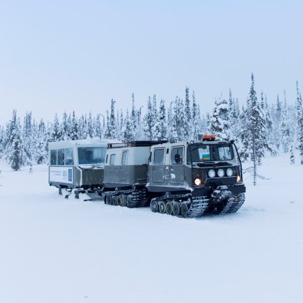 Ein aufregendes Abenteuer wartet auf Sie im winterlichen Wald Finnlands. Bewundern Sie die majestätische Natur Finnisch-Lapplands auf eine gemütliche und einzigartige Art und Weise – von einem Schneepanzer aus.