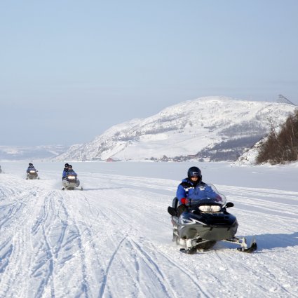 Diese Tour startet mit einem Transfer zum Hotel in Kirkenes zu einem alten norwegischen Bauernhaus, wo Sie nach einer kurzen Einführung ein spannendes Schneemobil-Abenteuer starten werden.