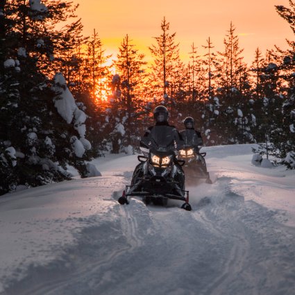 Die ruhigen eSleds bieten eine umweltfreundliche Art und Weise die saubere und frische arktische Natur auf einer spannenden Safari zu erleben. Die eSleds sind auch für Anfänger aufgrund der speziellen elektrischen Fahrweise sehr einfach zu bedienen. Auf dieser Schneemobilsafari werden Sie zu einer Jägdhütte inmitten des Waldes geführt. Die Reise beginnt im Tageslicht mit einer Überquerung des zugefrorenen Sees Lehtojärvi und führt weiter durch Sümpfe und Wälder. Sie werden an einer Jagdhütte auf der Spitze eine Hügels Halt machen, um sich am Lagerfeuer zu wärmen und ein Heißgetränk, Würstchen und Kekse zu genießen, bevor Sie die Rückfahrt antreten. Während der Rückfahrt geht die Sonne langsam unter und Sterne erleuchten den Himmel erleuchten.