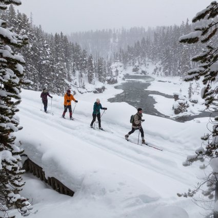 Es gibt keine leisere Methode durch die verschneite, kalte Umgebung zu fahren. Ihr Reiseleiter wird Ihnen die Nutzung der Ski näher bringen und, sobald sich jeder sicher und bereit fühlt, werden Sie für eine schöne Runde durch die einzigartige Winterlandschaft aufbrechen.