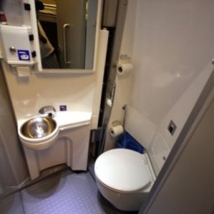Die Abteile mit privatem Bad liegen im oberen Deck der Doppelstockwagen. Sie sind etwas größer als die im unteren Deck (4,2 m²) und haben eine eigene Dusche und Toilette. Außerdem verfügen sie über einen kleinen Tisch, einen Spiegel und ein Badehandtuch.