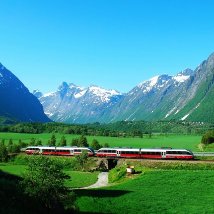 Diese Eisenbahnlinie verbindet die beiden größten Städte Norwegens miteinander und zeigt die Vielfalt der norwegischen Landschaft. In der ersten Klasse können Sie auf bequemen Sitzen mit eigenem Tisch und Tageszeitungen reisen, Kaffee und Tee sind kostenlos.