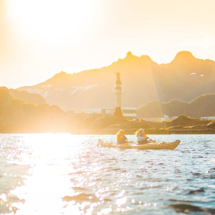 Die Natur der Lofoten bietet Ihnen einzigartige und spektakuläre Kontraste - Kajakfahren ist eine großartige Möglichkeit, diese zu bestaunen. Diese Kajaktour ist für jedermann geeignet. Sie lernen wie man Kajak fährt, gleiten durch magisches Licht und kommen mit jedem Paddelzug der Natur etwas näher. Die Reiseführer warten am Treffpunkt in Svolvær auf Sie und versorgen Sie mit allen notwendigen Informationen, bevor es los geht. Während der Fahrt erzählt Ihnen der Reiseführer etwas über die Geschichte und Kultur der Lofoten. Die Kombination aus Stille, die unberührte Natur um Sie herum und volle Bewegungsfreiheit macheen Kajakfahren zu einem der beliebtesten Abenteuer. Sie werden ausserdem viele Gelegenheiten finden, tolle Fotos zu machen.