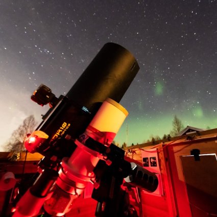 Treffen Sie Ulf Jonsson – ein ehemaliger Offizier der schwedischen Truppen (Oberstleutnant und Helikopter-Pilot). Als Hobby-Astronom besitzt er sein eigenes kleines Observatorium in der Nähe der Pine Bay Lodge nördlich von Luleå.