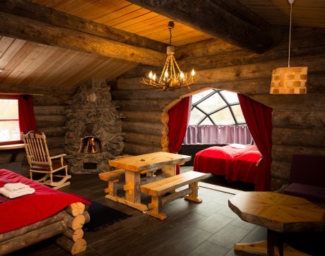 Das Kakslautternen Arctic Resort befindet sich 250km nördlich des Polarkreises in Finnisch-Lappland in der Bergregion Saariselkä inmitten der beeindruckenden arktischen Wildnis nahe des Urho-Kekkonen-Nationalparks. Das Arctic Resort ist in ein Ost- und West-Dorf (East und West Village) geteilt, die beide gemütlichen Chalets sowie Glas- und Schneeiglus bieten, umgeben von unberührter Natur. Beide „Dörfer“ haben eine Rezeption, ein kleines Souvenirgeschäft und ein Restaurant. Die Dörfer liegen ca. 4 Kilometer voneinander entfernt. Der Westbereich ist die neuere Anlage, in dem Sie den weltweit einzigen 30 Meter hohen „Kunst- und Glas-Iglu-Turm“ finden können. Genießen Sie den atemberaubenden Ausblick auf die umliegende arktische Wildnis und kommen Sie dem magischen Himmel näher. Das Restaurant Aurora, das lappische Spezialitäten anbietet, ist eines der größten Holzrestaurants der Welt. Es beheimatet ebenfalls die Glas-Iglu-Bar, in der Sie ein Getränk unter dem arktischen Himmel genießen können.